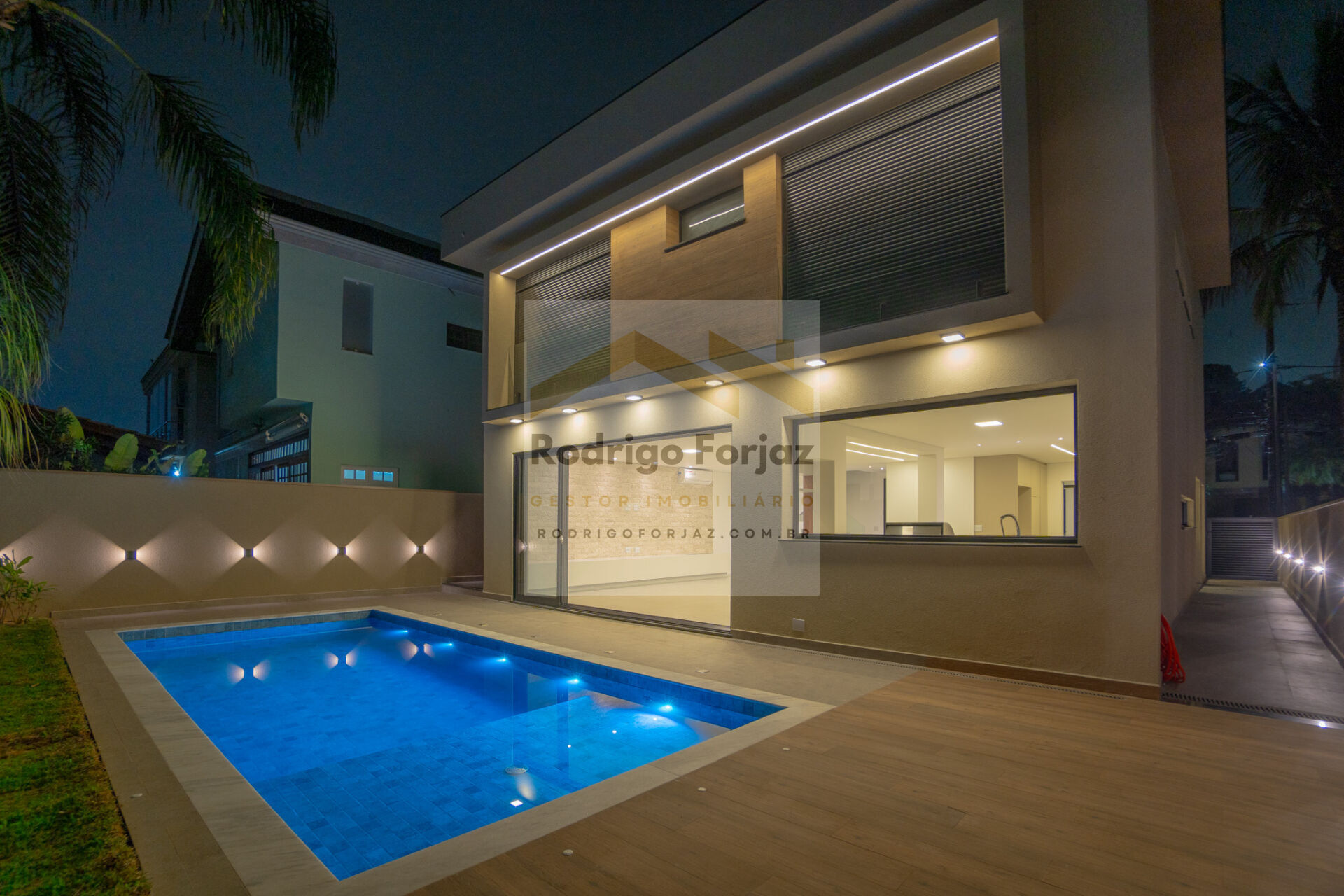 Iluminação da piscina com controle remoto.