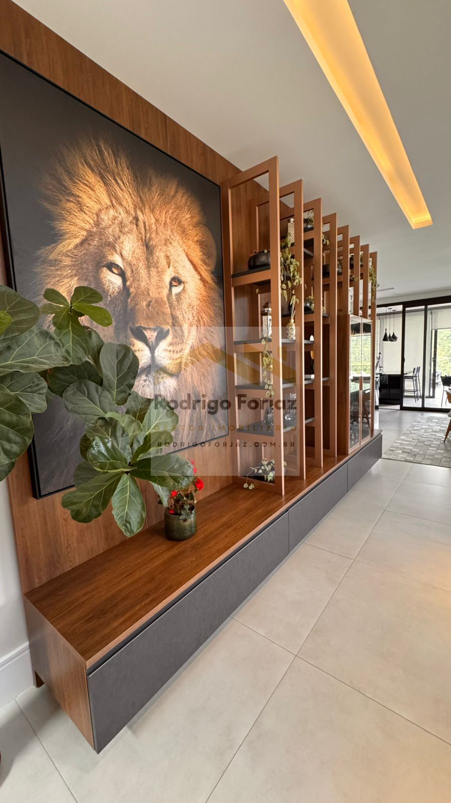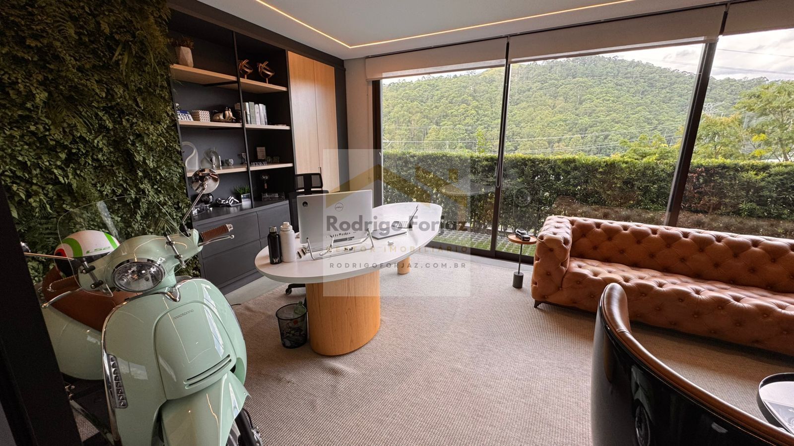 01 Área Gourmet completa com 01 Churrasqueira, 01 Choppeira, 01 Piscina Aquecida com Prainha e vista para a mata. 01 Spa com hidromassagem para 5 pessoas. 01 salão de beleza completo com lavatório, 01 Sala de jogos com adega e frigobar, Ar condicionados do Tipo Cassete instalados na sala e em outros ambientes, Aquecimento do boiler com placas solares, 01 Depósito, 01 Dependência de empregada com banheiro exclusivo, 06 Vagas de Garagem Cobertas.