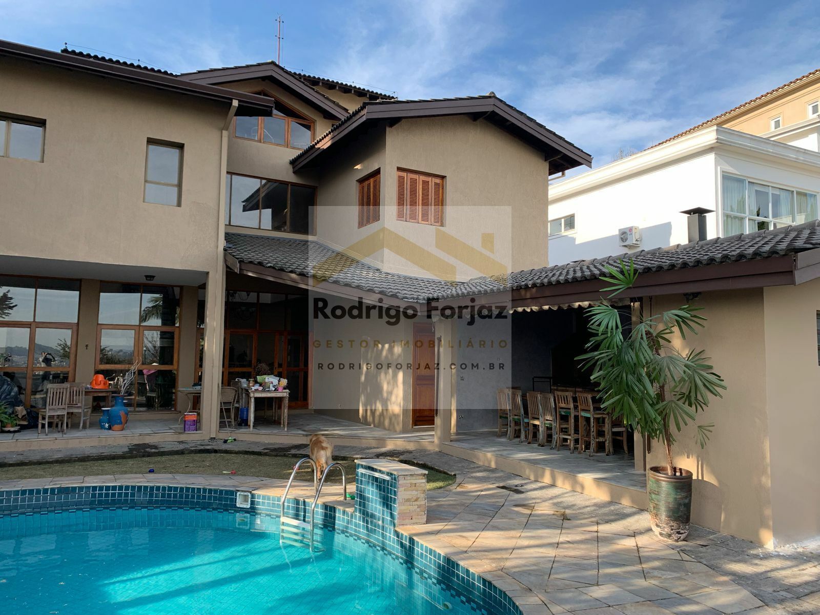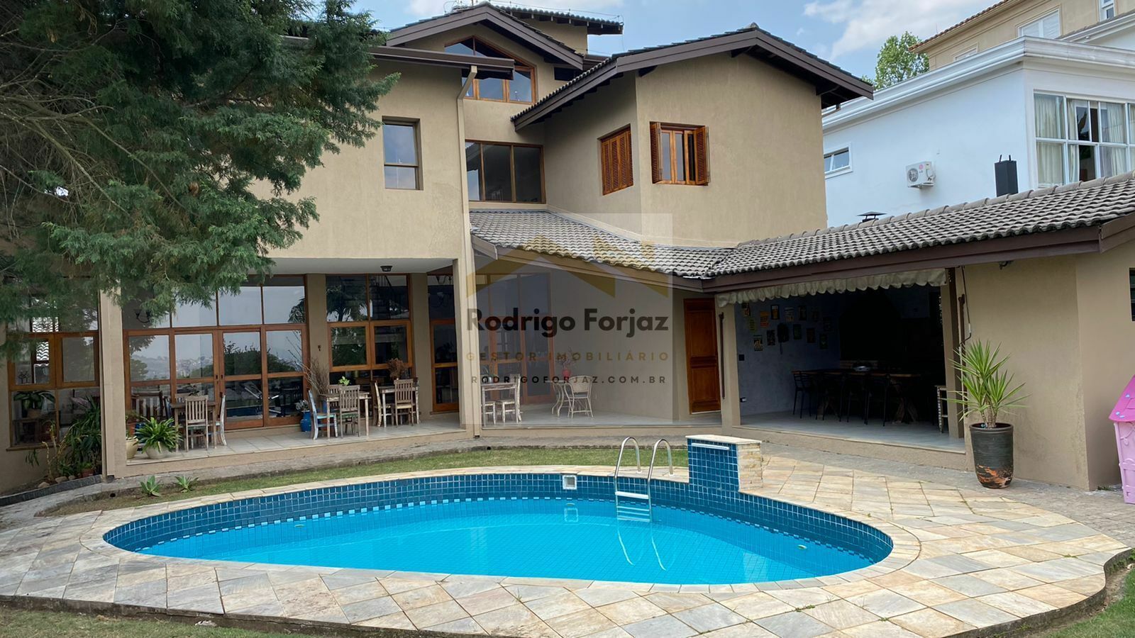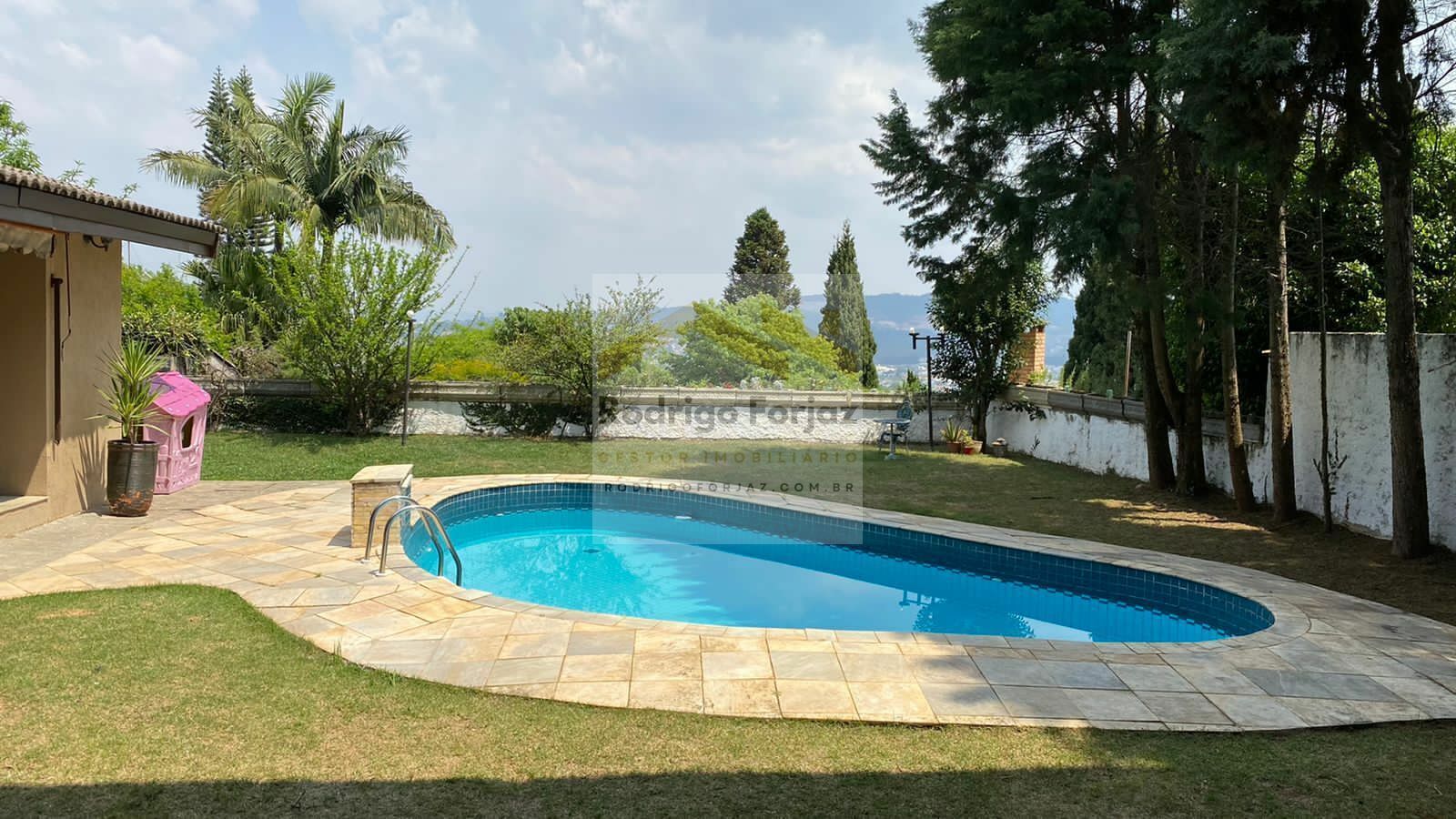 EXCELENTE CASA com 04 dormitórios sendo 04 suítes (Suite casal com hidromassagem), living composto de 3 amplas salas (lareira, varanda para jardim externo e jardim interno), escritório, brinquedoteca, cozinha, despensa. Ampla área com churrasqueira e forno para pizza, área para sauna úmida e banheiro, piscina com cachoeira (22 m2). Lavanderia, dependência de empregada (entrada separada e banheiro), banheiro de serviço externo com chuveiro. Garage coberta para 4 veículos.
