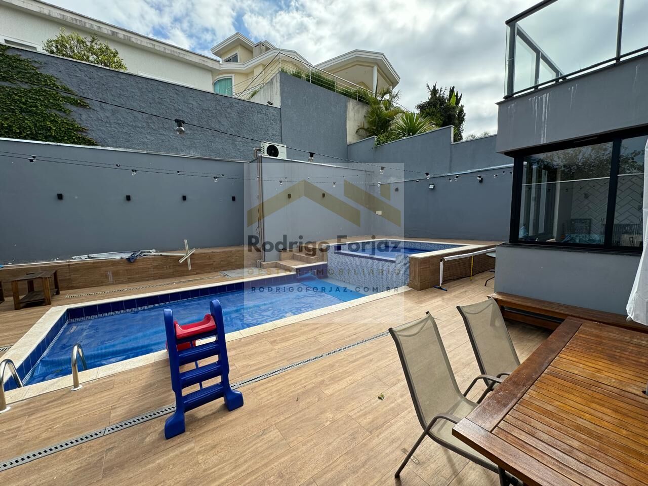 Possui uma Piscina aquecida com prainha e jacuzi, Área gourmet com churrasqueira coberta integrada com a casa, Casa alimentada com 40 placas solares, 5mil litros caixa d’água, Boiler 1.000 L com placa solar independente, Depósito, Área preparada para fazer outro depósito embaixo da sala, 02 acessos laterais sendo 01 com rampa para cadeirante e 01 com escada, 01 Ponto de carregamento elétrico para carro.