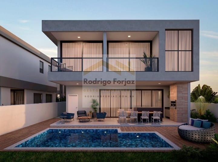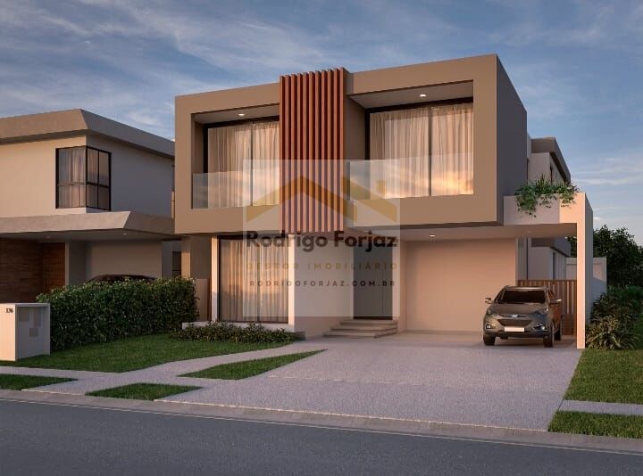 Com 04 quartos, todos suítes, e 06 banheiros espalhados por uma área construída de 396m², uma área de terreno de 430m², esta casa é o sonho de qualquer pessoa que busca conforto e elegância. Imagine aproveitar momentos inesquecíveis com amigos e familiares na sala de estar, ou na sala de jantar, na churrasqueira, espaço gourmet e até mesmo junto à lareira em noites mais frias. Com 04 Vagas.