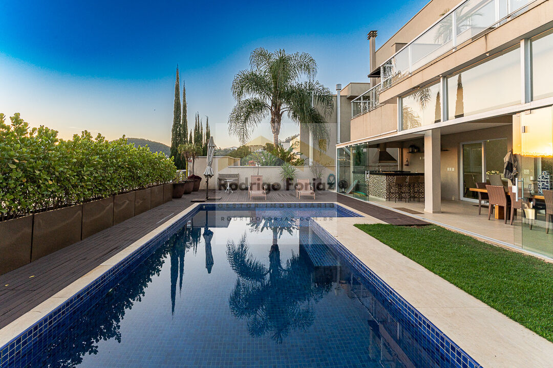 EXUBERANTE CASA À VENDA NO CONDOMÍNIO TAMBORÉ 10 / ALPHAVILLE/SP – 100% MOBILIADA (PORTEIRA FECHADA), com Área de Terreno: 525,00 m², Área Construída: 485,00 m²; possui 04 dormitórios sendo 04 suítes (Suíte Máster com Hidromassagem e Closet mais 01 Suíte com closet), Salas com amplo living, lareira e 01 escritório. Ampla Integração do espaço social, com a sala de jantar e espaço gourmet, espaço para Home Theater no pavimento superior. No Espaço Gourmet conta com 01 Piscina aquecida, e 01 churrasqueira com 01 pia em granito são Gabriel e 01 mesa de 08 lugares. 04 Vagas de Garagem.