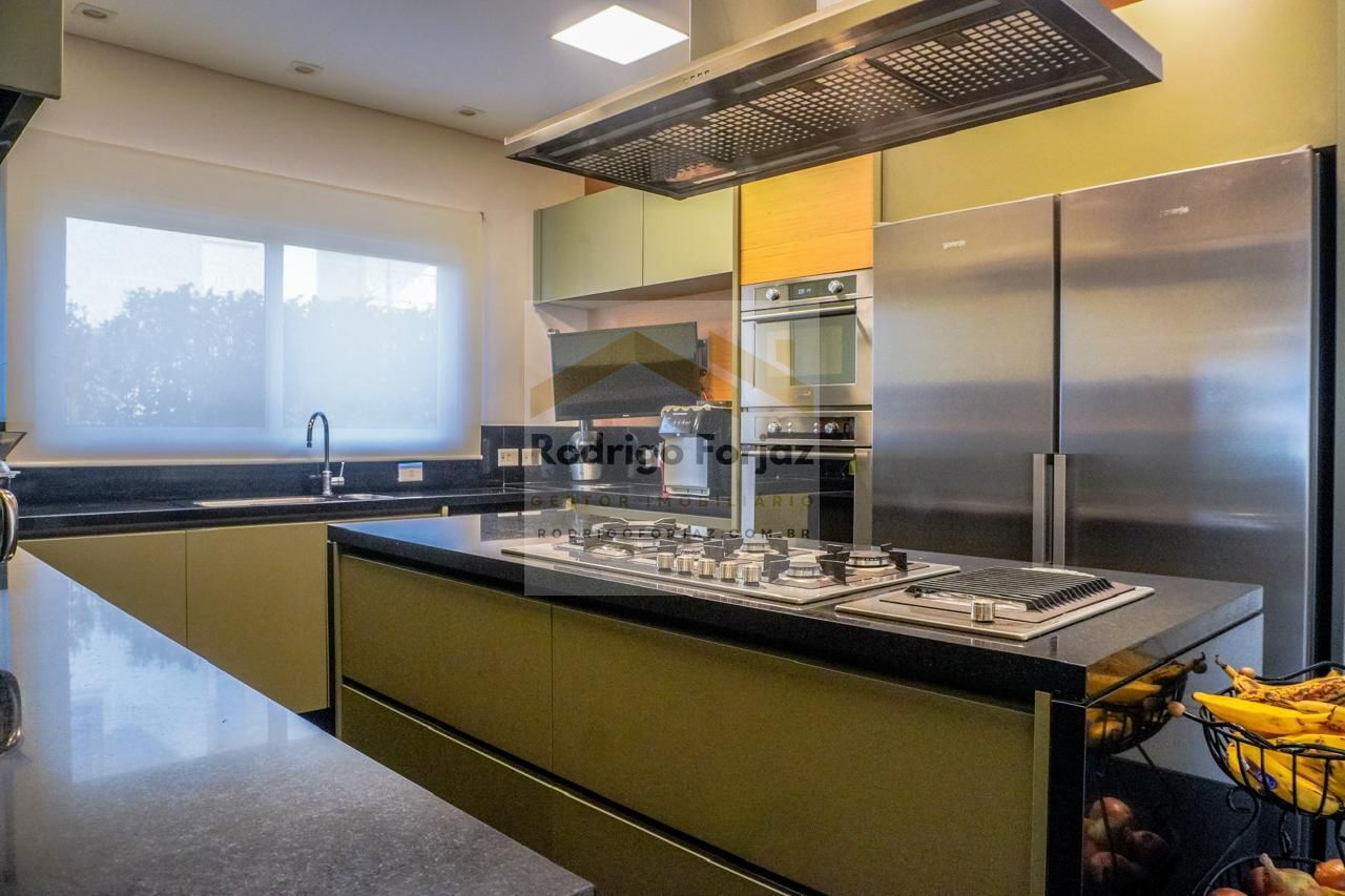EXUBERANTE E LINDA MANSÃO À VENDA 100% MOBILIADA E DECORADA NO RESIDENCIAL TAMBORÉ 10, 800 m2 DE ÁREA CONSTRUÍDA, 710 m2 DE ÁREA DE TERRENO - Mansão com uma localização privilegiada dentro do residencial, em rua plana para caminhadas e corridas, próximo da portaria social, do novo Club House e de frente para a praça principal. São 4 grandes suítes com fina decoração e vistas diferenciadas, sendo a principal com 82m2 e as outras três, todas com no mínimo 30 m2, Living com Pé Direito Duplo, sala de jantar, sala de almoço e todos os banheiros da casa com pisos com mármores paginados em crema Marfil espanhol e com placas de 1,20 x 1,20 e 2,5 cm de espessura, cozinha em granito preto São Gabriel, e, suítes, home theater (em dois níveis e com 8 caixas de som Jamo dinamarquesas, receiver Denon japonês, e Poltronas Natuzzi) e escritório com tacos de madeira Cumaru. Cozinha e Área Gourmet são Ornare e com equipamentos Gorenje (Eslovenos) e Elettromec (Italianos). Garagem coberta para 8 carros (200 m2).