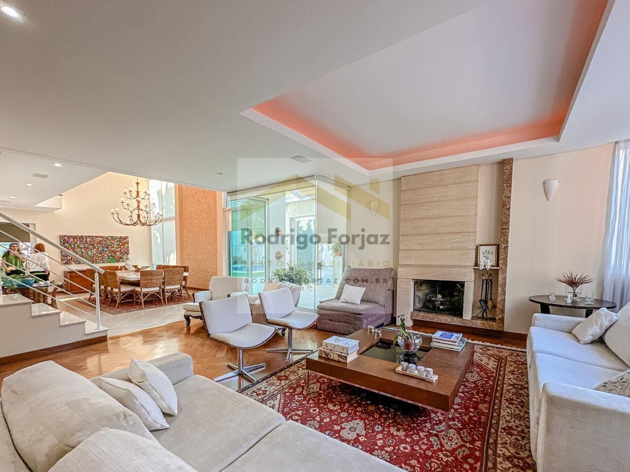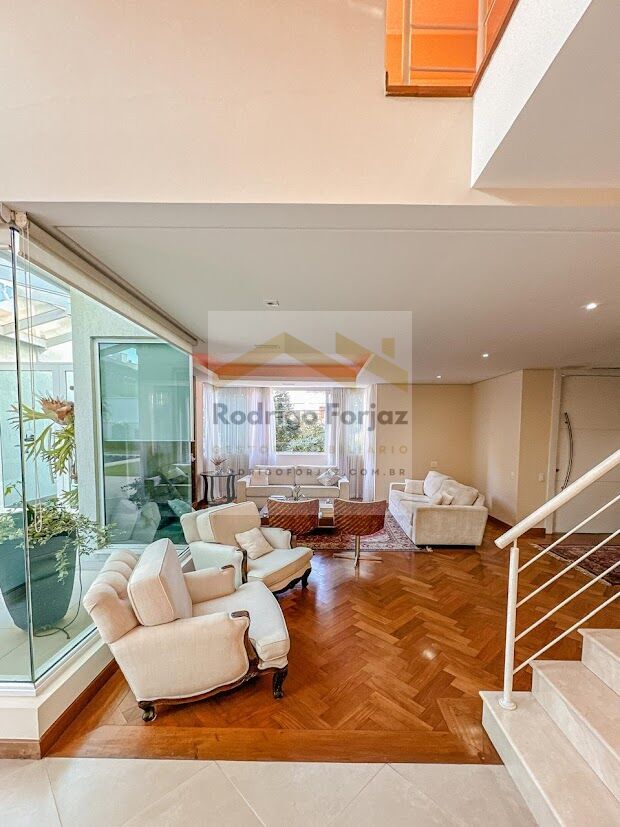 Projeto contemporâneo, muita luminosidade natural, e acabamento de qualidade e diferenciado a residência possui 04 quartos sendo 02 suítes repletas de armários e a suíte máster com um amplo closet, living para vários ambientes com vista para a área de lazer, 01 sala de jantar, 01 sala de estar, 01 sala de lareira, 01 lavabo, 01 escritório e 01 home theater. Ar-condicionado instalado em todos os cômodos da residência, 01 despensa, 01 lavanderia e 01 suíte de serviço. Garagem para 02 carros cobertos e 03 carros descobertos. Uma deliciosa casa para você viver momentos inesquecíveis com a sua família!
