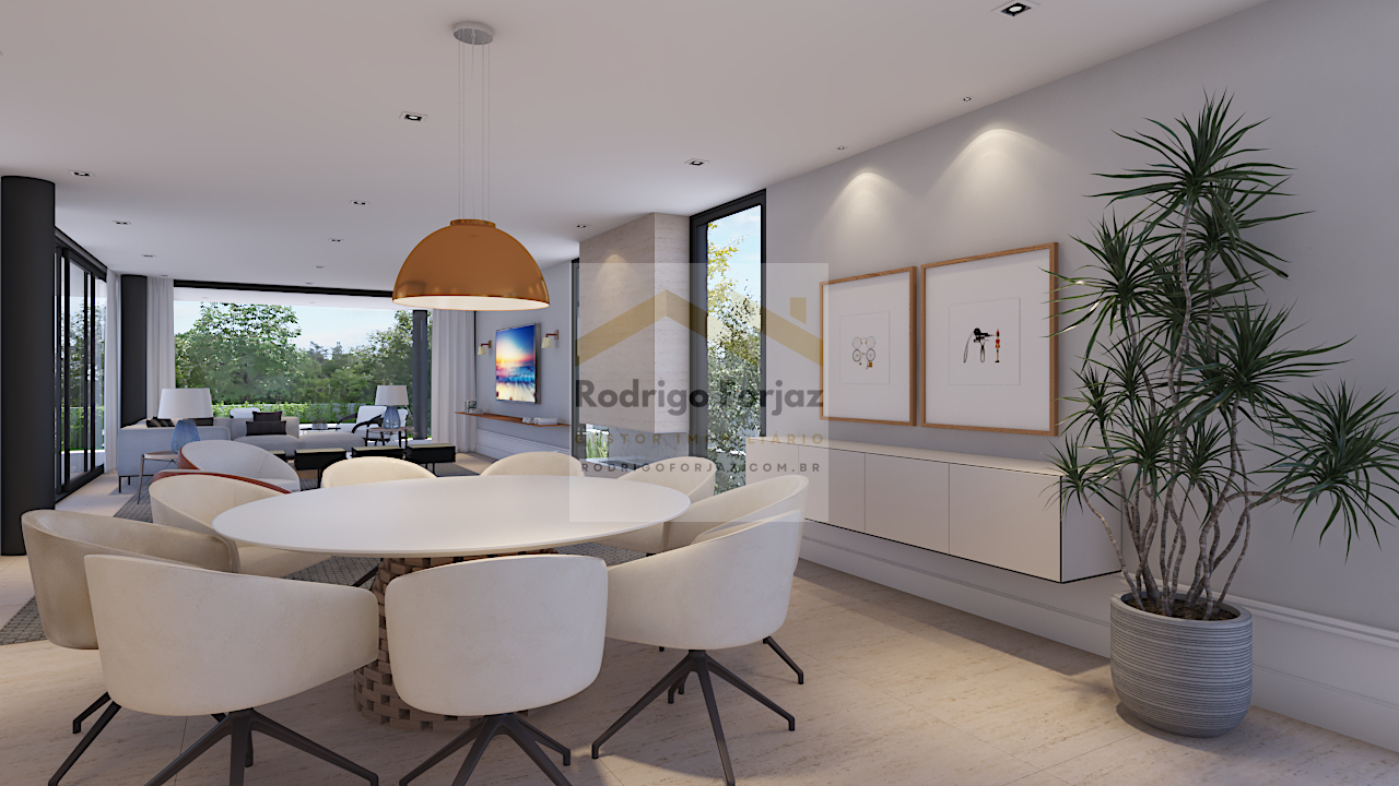 Piso da área social com porcelanato de grande formato, Janelas piso-teto em alumínio, Piso superior revestido em madeira, Portas de madeira em laca branca, Bancadas dos banhos em mármore prime, Louças e metais Deca e banheira Jacuzzi, Cozinha e gourmet com bancada em marmoglass branco, Bancada da lavanderia com granito preto São Gabriel, Paisagismo completo.